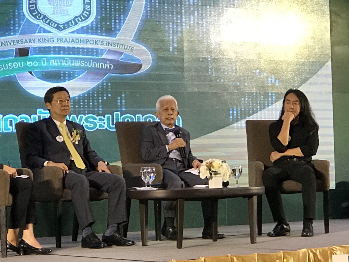 จากนั้นเป็นการเสวนาเรื่อง “เหลียวหลังแลหน้าสถาบันพระปกเกล้ากับการพัฒนาประชาธิปไตย” โดยนายนรนิติ เศรษฐบุตร ประธานกรรมการวิชาการสถาบันพระปกเกล้า กล่าวว่า สถาบันพระปกเกล้า ต้องมีจุดยืนเรื่องความเป็นกลาง ซึ่งผลงานของสถาบันพระปกเกล้ารอบ 20 ปีที่ผ่านมา ไม่สามารถชี้วัดได้เป็นรูปธรรม เหมือนกับการตีพิมพ์หนังสือ โดยงานของสถาบันที่ผ่านมามีช่วงที่เป็นคราวเคราะห์ เพราะประเทศเผชิญกับการยึดอำนาจถึง 2 ครั้ง ขณะที่การที่สถาบันเน้นอบรมนักการเมือง เป็นปัจจัยหนึ่งที่ทำให้ประชาชนรักประชาธิปไตย โดยที่ผ่านมายอมรับว่าการจัดอบรมให้ผู้แทนราษฎร คนที่เข้ารับการอบรมไม่ค่อยยอมรับ เพราะเหมือนกับสถาบันสอนผู้ที่มีประสบการณ์และความรู้ ขณะที่งานอีกด้าน คือ เป็นฐานความรู้ให้กับ ฝ่ายนิติบัญญัติ