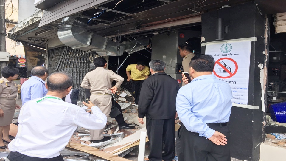 ที่เกิดเหตุแก๊สเครื่องอบผ้าระเบิด เมื่อคืนที่ผ่านมา ทำให้มีผู้ได้รับบาดเจ็บ และ โครงสร้างอาคารได้รับความเสียหายอย่างรุนแรง ก่อนระบุว่าโครงสร้างอาคารที่ได้รับความเสียหายจากแรงระเบิดประกอบด้วย เสาหัก 6 ต้น เป็นเสาด้านหลัง 4 เสากลางตัวอาคาร 2 ต้น ประเมินเบื้องต้นน้ำหนักตัวอาคารยังถ่ายเทไปยังเสาต้นอื่นที่เหลืออยู่ แต่ตัวอาคารติดถนนที่มีรถขนาดใหญ่ วิ่งผ่าน และเป็นช่วงหน้าฝนหากมีฝนตกลงมากอาจทำให้วัสดุในตัวอาคารอุ้มน้ำอาจทำให้โครงสร้างที่เหลืออยู่รับน้ำหนักไม่ไหว ดังนั้นควรต้องรีบใช้เหล็กรูปตัว H มาช่วยค้ำยันตรงกลางอาคารเพื่อช่วยรองรับน้ำหนัก ภายใน 2-3 ชั่วโมงนี้ ก่อนให้เจ้าหน้าที่พิสูจน์หลักฐานเข้าพื้นที่เก็บรวบรวมพยานหลักฐาน ส่วนตัวอาคารนั้นเบื้องต้นคาดว่ายังสามารถซ่อมแซมได้แต่ต้องได้รับการรับรองจากวุฒิวิศวกรรมก่อนเปิดใช้อีกครั้ง