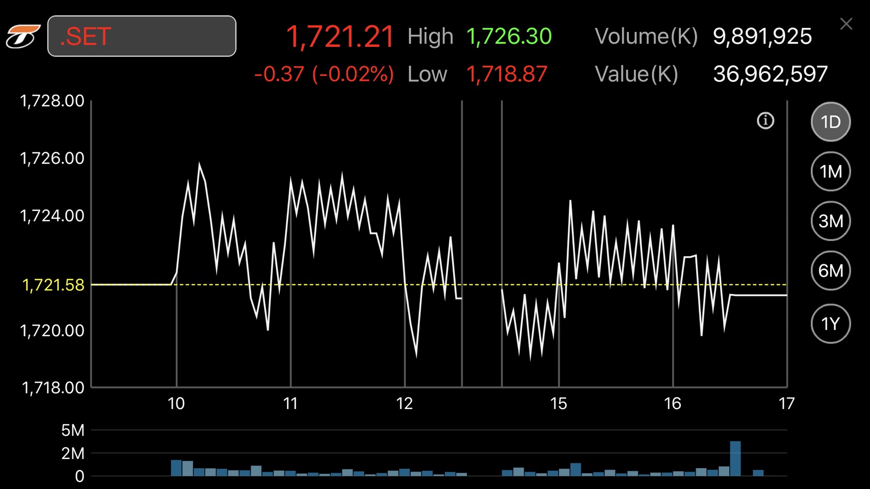 ตลท. 3 ก.ย. – หุ้นไทยเงียบเหงา ปิดตลาดที่ระดับ 1,721.21 จุด มูลค่าการซื้อขายเบาบาง 36,900 ล้านบาท