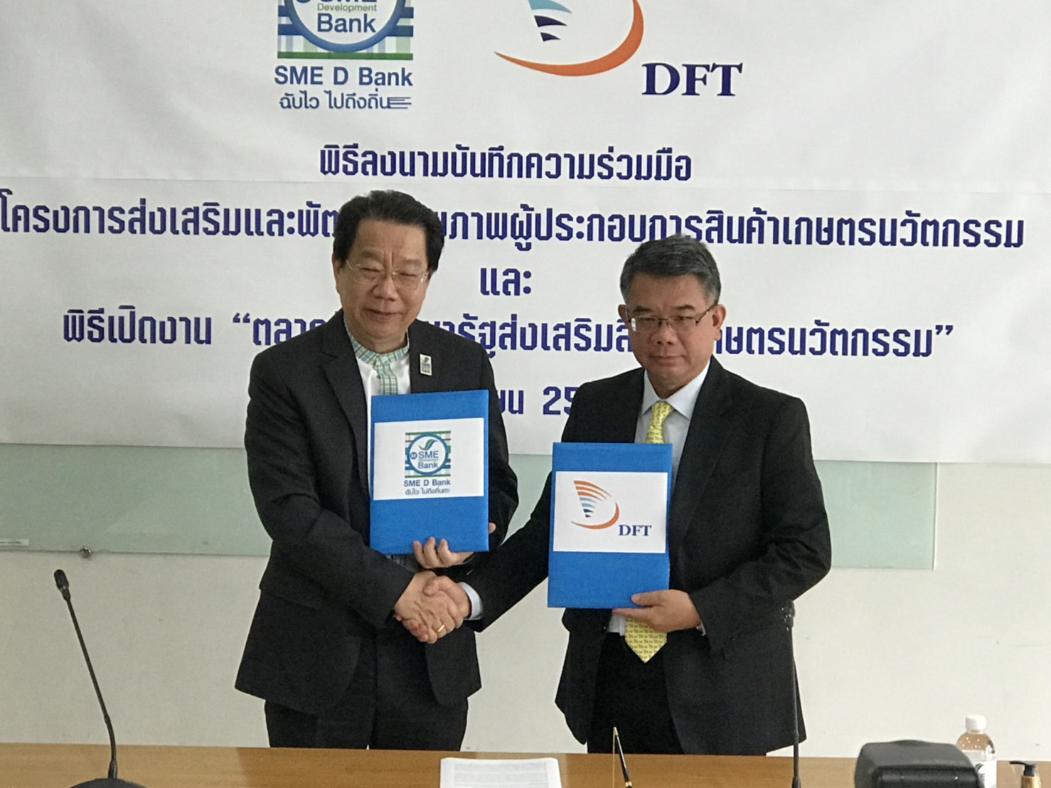 นายมงคล ลีลาธรรม กรรมการผู้จัดการ ธนาคารพัฒนาวิสาหกิจขนาดกลางและขนาดย่อมแห่งประเทศไทย (SME Development Bank) หรือ ธพว. กล่าวถึงการลงนามบันทึกข้อตกลงความร่วมมือโครงการส่งเสริมและพัฒนาศักยภาพผู้ประกอบการสินค้าเกษตรนวัตกรรม ระหว่าง ธพว.กับกรมการค้าต่างประเทศ กระทรวงพาณิชย์ ว่า กรมการค้าต่างประเทศจะคัดกรองผู้ประกอบการสินค้าเกษตรนวัตกรรมที่มีศักยภาพและต้องการเงินทุนส่งมายังธนาคาร หลังจากนั้นธนาคารจะนำเข้าสู่กระบวนการพัฒนาความรู้พร้อมเข้าถึงแหล่งเงินทุนในอัตราดอกเบี้ยถูกพิเศษ เช่น สินเชื่อเถ้าแก่ 4.0 สำหรับนิติบุคคลคิดอัตราดอกเบี้ยเพียงร้อยละ 1 ต่อปี ตลอดระยะเวลา 7 ปี ปลอดชำระเงินต้น 3 ปีแรก โดยกู้ 1 ล้านบาท ผ่อนเพียงวันละ 410 บาท และสินเชื่อเศรษฐกิจติดดาวเปิดโอกาสให้ทั้งบุคคลธรรมดาและนิติบุคคล สำหรับธุรกิจเกษตรแปรรูป ธุรกิจท่องเที่ยวชุมชน และเชื่อมโยงต่อเนื่อง คิดอัตราดอกเบี้ยเพียงร้อยละ 3 คงที่ 3 ปีแรก ผ่อนนาน 7 ปี โดยกู้ 1 ล้านบาท ผ่อนเพียง 460 บาทต่อวันเท่านั้น