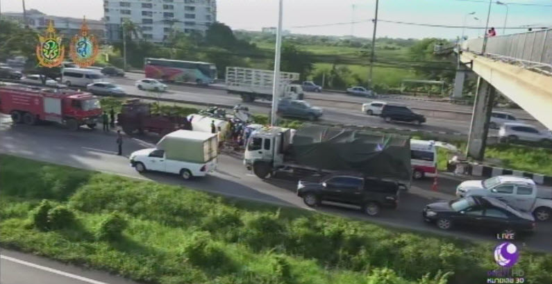 สมุทรสาคร 17 ก.ย. – รถบรรทุกแก๊ส LPG เกือบ 8 ตัน พลิกคว่ำตกร่องกลางถนนช่องทางด่วนขาเข้า กทม. จุดสะพานลอยข้างวัดราษฎร์รังสรรค์ อ.เมือง สมุทรสาคร เจ้าหน้าที่ต้องใช้เครื่องตัดถ่างนำร่างผู้ติดอยู่ในรถ 2 คน ออกมา 1 ในนั้นอาการสาหัส สอบสวนคนขับทราบว่าก่อนเกิดเหตุขับมาจาก อ.บางจะเกร็ง เพื่อนำแก๊สไปส่งลูกค้าตามปั๊ม เมื่อมาถึงที่เกิดเหตุมีรถช้าขวางทำให้รถต้องเหยียบเบรคเพื่อชะลอ แต่ถนนลื่นทำให้รถหมุนเสียหลักไปชนการ์ดเลนตกข้างทาง ซึ่งขณะนี้ตำรวจกำลังประสานบริษัท และผู้เชี่ยวชาญมาตรวจสอบ เนื่องจากมีกลิ่นแก๊สรั่วออกมาจากรถ. -สำนักข่าวไทย