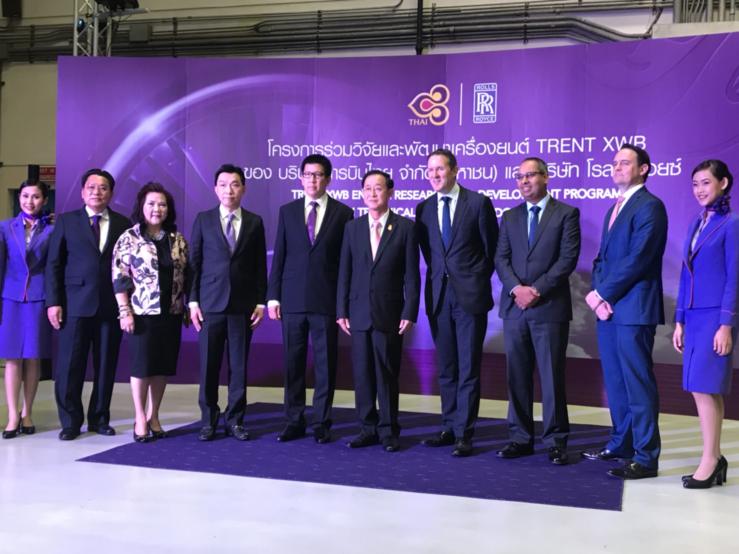 นายอาคม เติมพิทยาไพสิฐ รัฐมนตรีว่าการกระทรวงคมนาคม เป็นประธานในพิธีเปิดโครงการร่วมวิจัยและพัฒนาเครื่องยนต์ Trent XWB แห่งแรกของโลก ระหว่าง บมจ.การบินไทย และบริษัทโรลส์ รอยซ์ โดยโรลส์ รอยซ์สนับสนุนโครงการด้วยการลงทุนในไทยปีละ 100 ล้านเหรียญสหรัฐในการสนับสนุนการดำเนินงานสายการผลิตในประเทศไทย พร้อมเปิดเผยว่าความร่วมมือครั้งนี้มีเป้าหมายเพื่อการวิจัยและพัฒนาเครื่องยนต์โรลส์ รอยซ์ รุ่น Trent XWB-97 ซึ่งเป็นเครื่องยนต์รุ่นล่าสุดที่ถูกนำมาใช้งานเป็นครั้งแรกในอุตสาหกรรมการบินกับเครื่องบินแบบแอร์บัส A350-1000 เมื่อเดือนกุมภาพันธ์ที่ผ่านมา ทำให้โรลส์รอยซ์ รู้ถึงสมรรถนะ จุดอ่อน จุดแข็ง ของเครื่องยนต์ตลอดอายุการใช้งาน โดยต้องทำการทดสอบเครื่องยนต์ที่อาคารทดสอบสมรรถนะเครื่องยนต์อากาศยานต่อเนื่องให้มีชั่วโมงการบินมากกว่าเครื่องบินที่ใช้งานในปัจจุบัน โดยฝ่ายช่างการบินไทยปรับปรุงและดัดแปลงระบบต่าง ๆ รองรับการทดสอบเครื่องรุ่นนี้แล้ว