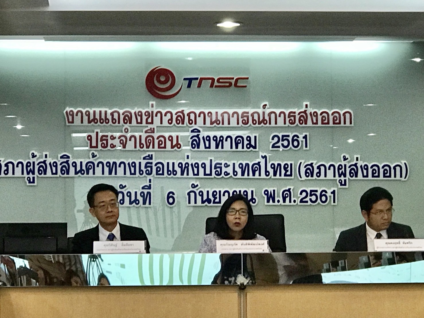 นางสาวกัณญภัค ตันติพิพัฒนพงศ์ ประธานสภาผู้ส่งสินค้าทางเรือแห่งประเทศไทย หรือ สรท. กล่าวว่า การส่งออกเดือนกรกฎาคม 2561 มีมูลค่า 20,424 ล้านดอลลาร์สหรัฐ ขยายตัวร้อยละ 8.3 เมื่อเทียบกับช่วงเดียวกันของปีก่อน เป็นการขยายตัวต่อเนื่องระดับสูงเป็นเดือนที่ 17 โดยการส่งออกไปญี่ปุ่น สหภาพยุโรป (อียู) อินเดีย อาเซียน และ CLMV ขยายตัวดี ยกเว้นตลาดสหรัฐอเมริกาที่หดตัวร้อยละ 1.9 และตลาดตะวันออกกลางหดตัวร้อยละ 9.4 เป็นการหดตัวต่อเนื่อง 4 เดือนติดต่อกัน ขณะที่ยังคงมีความกังวลจากปัญหาสงครามการค้า
