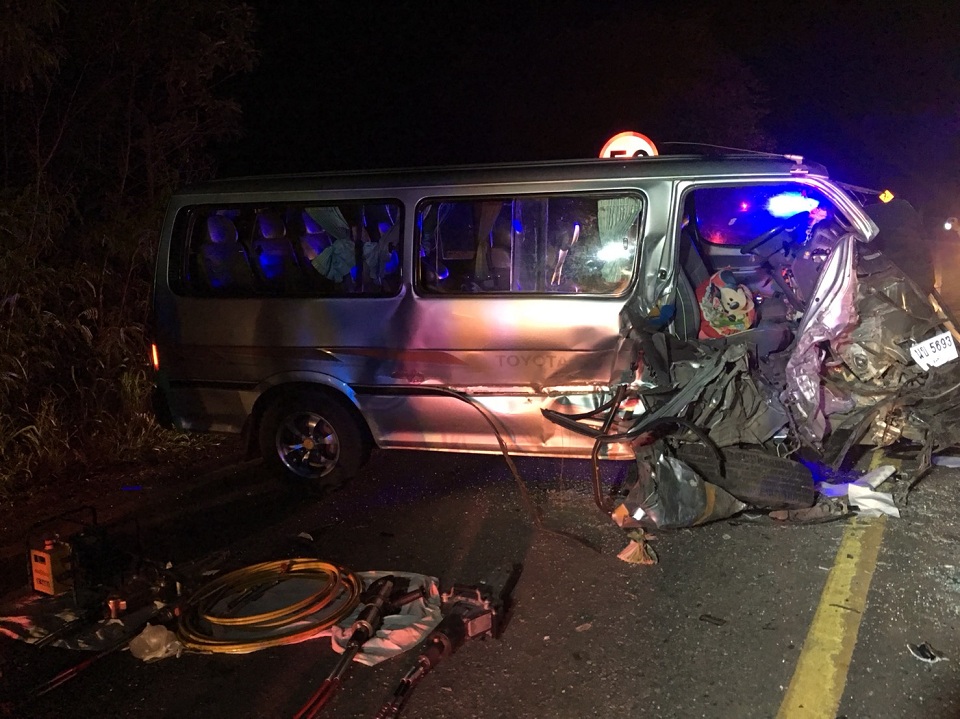 ลพบุรี 6 ก.ย.- ทางมืดทางแคบ กระบะ-รถตู้ประสานงาเต็มแรงกลางถนนสายหนองม่วง-ลพบุรี กู้ภัยช่วย 4 ผู้บาดเจ็บออกจากรถพาส่งโรงพยาบาล