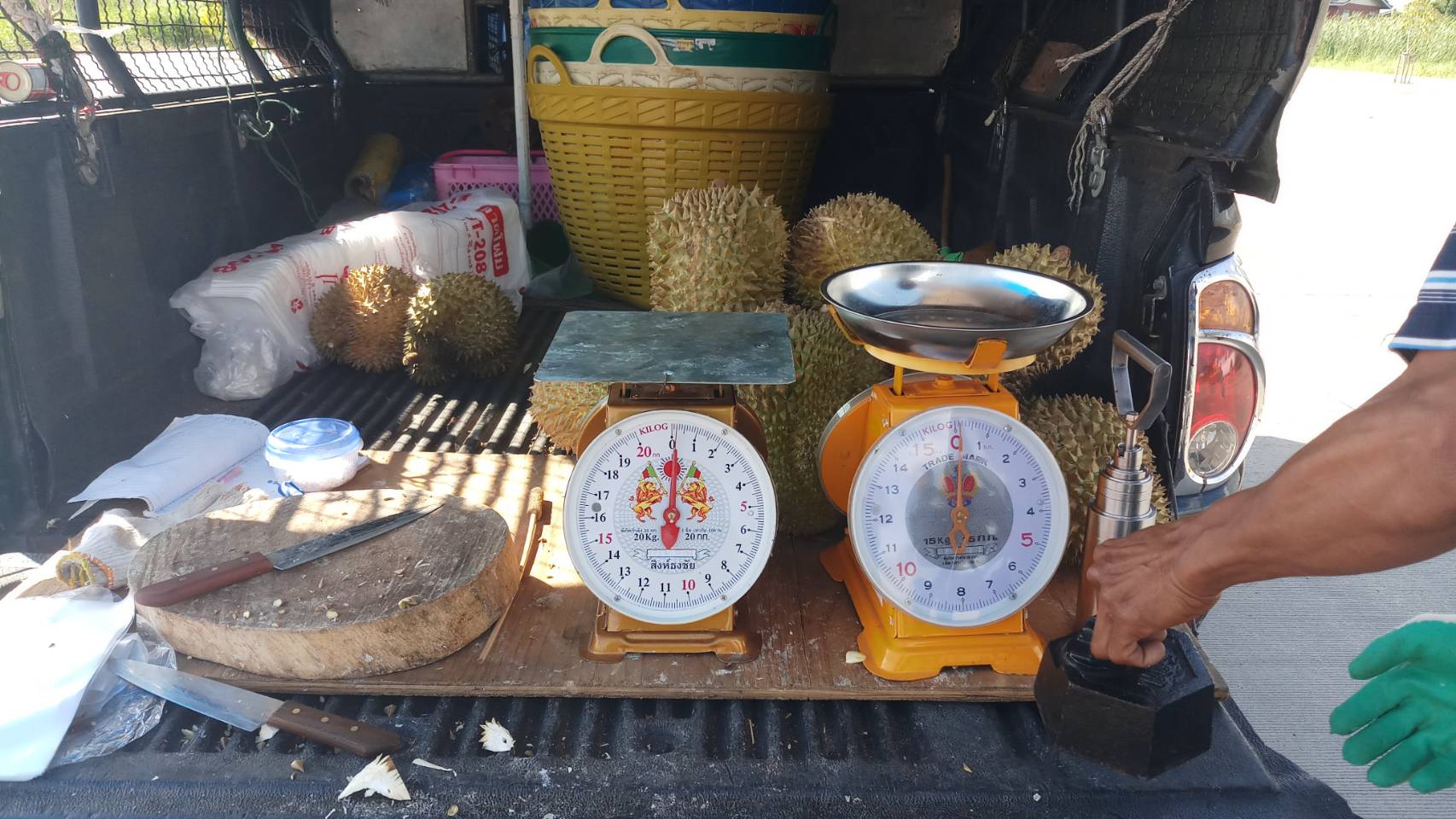 ทั้งนี้ จากการตรวจสอบบริเวณถนนพัฒนาการตัดใหม่พบรถเร่ขายทุเรียนใช้เครื่องชั่งที่มีการทำลายเครื่องหมายการรับรองและดัดแปลงภายใน ทำให้เครื่องชั่งแสดงค่าน้ำหนักเอาเปรียบประชาชนประมาณ 3-4 ขีดต่อทุเรียน 1 ลูกจริง จากการสอบปากคำผู้ขายทุเรียนว่าผู้ใดเป็นผู้ดัดแปลงได้ความว่าผู้ดัดแปลงพักอาศัยอยู่ในสถานที่เดียวกันภายในซอยเฉลิมพระเกียรติ 48 และมีรถเร่ขายทุเรียนที่มีพฤติกรรมใช้เครื่องชั่งดัดแปลงจำหน่ายทุเรียนให้กับประชาชน นายตรวจชั่งตวงวัดจึงร่วมกับพนักงานสอบสวนของสถานีตำรวจนครบาลอุดมสุขร่วมตรวจสอบรถเร่ขายทุเรียนและสถานที่พักของเจ้าของรถดังกล่าว