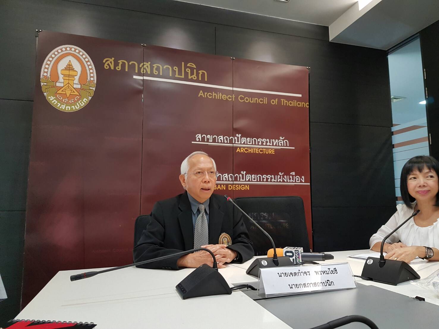 นาย เจตกำจร พรหมโยธี นายกสภาสถาปนิก กล่าวถึงการตรวจสอบใบประกอบวิชาชีพ สจล.หลังมีการออกวิมานพระอินทร์ แลนด์มาร์กของโครงการพัฒนาริมฝั่งแม่น้ำเจ้าพระยา ว่า จากการตรวจสอบใบประกอบวิชาชีพ นิติบุคคลจากสภาสถาปนิก พบว่า สจล.ไม่มีใบอนุญาตวิชาชีพนิติบุคคลจากสภาสถาปนิก ตาม พรบ.สถาปนิก พ.ศ.2543 การที่ สจล.อ้างว่ากลุ่มคณะทำงานมีใบอนุญาต แต่ด้วยเป็นคู่สัญญาที่รับผิดชอบงานร่วมกันจึงปฏิเสธไม่ได้ อีกทั้งงานออกแบบโครงการนี้ ทำตามเงื่อนไข ระเบียบราชการแบบรัฐกับรัฐ โดยกระทรวงมหาดไทย และกทม . ทำให้เกิดช่องว่างทางกฎหมาย ไม่ต้องผ่านการประมูล ซึ่งหากจะให้ สภาสถาปนิกเข้าไปดำเนินการ แก้ไขข้อบังคับ หรือ ดำเนินการกับ สจล. ไม่ได้ ต้องมีผู้ร้องเรียนเข้ามายังสภา และต้องยื่นเรื่องไปยังคณะกรรมการกฤษฎีกาเพื่อขออำนาจชี้ขาด ว่าสถาบันการศึกษาสามารถรับงานได้หรือไม่ ซึ่งต้องใช้เวลาอย่างน้อยไม่ต่ำกว่า 2 ปี