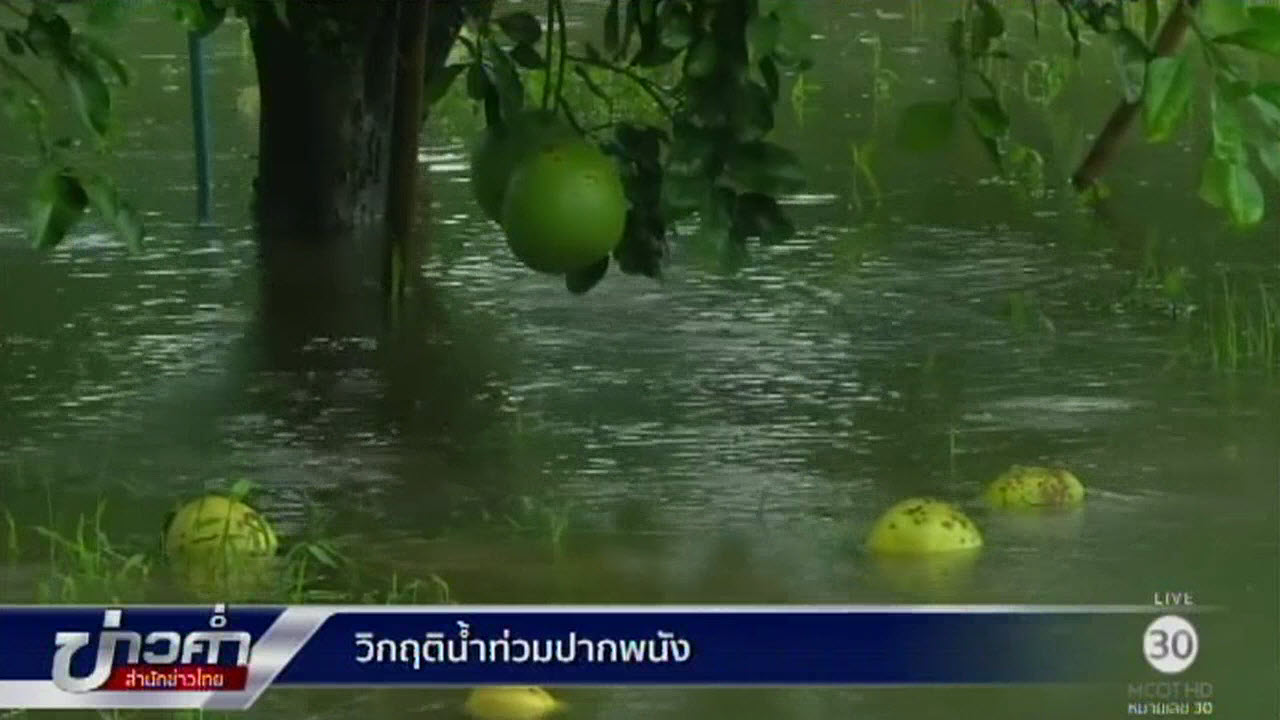 นครศรีธรรมราช 7 ธ.ค.-สถานการณ์น้ำท่วมใน จ.นครศรีธรรมราช ล่าสุดน้ำได้ไหลลงพื้นที่ท้ายน้ำ โดยเฉพาะในพื้นที่ อ.ปากพนัง ทำให้ระดับน้ำยังสูง และเริ่มส่งผลกระทบต่อพืชผลการเกษตร โดยเฉพาะส้มโอพันธุ์ทับทิมสยาม ที่สร้างรายได้ให้กับพื้นที่ปีละนับร้อยล้านบาท