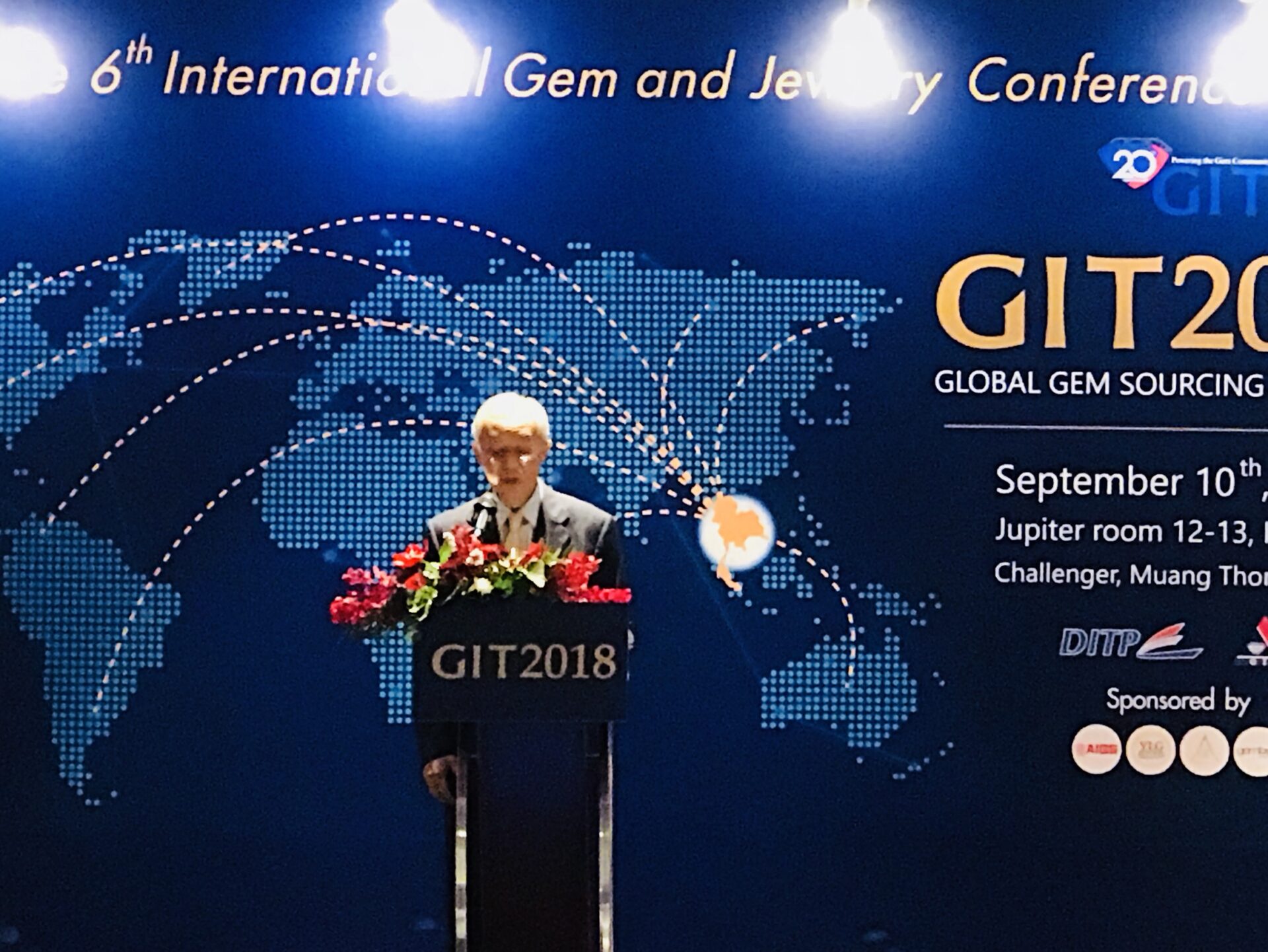 นายราเชนทร์ พจนสุนทร ประธานคณะกรรมการสถาบันวิจัยและพัฒนาอัญมณีและเครื่องประดับแห่งชาติเป็นประธานเปิดการประชุมและปาฐกถาพิเศษ ในหัวข้อ “อุตสาหกรรมพลอยสีไทยยิ่งใหญ่ไม่แพ้ชาติใดในโลก” พร้อมด้วยผู้ทรงคุณวุฒิอุตสาหกรรมอัญมณีและเครื่องประดับจากทั่วโลกกว่า 150 ราย เพื่อร่วมประชุมวิชาการนานาชาติด้านอัญมณีและเครื่องประดับ (The 6th International Gem & Jewelry Conference 2018 : GIT 2018) และยังเป็นการแลกเปลี่ยนความรู้และประสบการณ์ รวมถึงวิเคราะห์ทิศทางอุตสาหกรรมอัญมณีโลกปีหน้า โดยไทยจะใช้เวทีดังกล่าวเป็นการตอกย้ำอุตสาหกรรมอัญมณีไทยเป็นที่ต้องการของชาวโลกเพิ่มขึ้นอย่างต่อเนื่องในช่วง 4-5 ปีที่ผ่านมาโดยเฉพาะพลอยสี