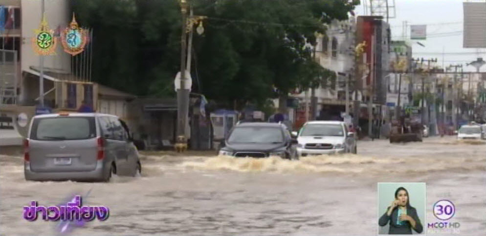 ชัยภูมิ 16 ก.ย. – ฝนที่ตกหนักเหนือเขื่อนลำปะทาว ทำให้เขื่อนต้องพร่องน้ำเพื่อรับน้ำใหม่ ส่งผลให้น้ำเอ่อท่วมใจกลางเมืองชัยภูมิหลายจุด. – สำนักข่าวไทย