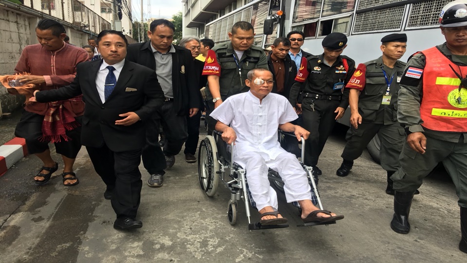 โดยวันนี้ อดีตพระพุทธะอิสระ สวมชุดสีขาว นั่งรถเข็ญมายังศาล เนื่องจากยังมีอาการบาดเจ็บที่กระดูกสันหลัง ข้อเข่าเสื่อม และเพิ่งผ่าตัดตาข้างขวาจากจอประสาทตาเสื่อม ซึ่งมีลูกศิษย์มาให้กำลังใจเป็นจำนวนมาก