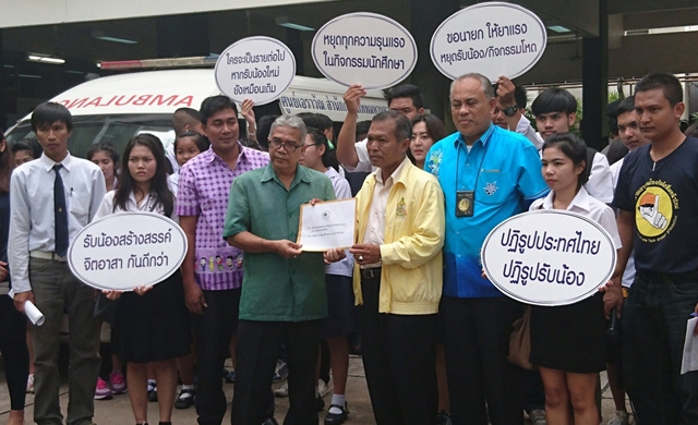 ศูนย์รับเรื่องราวร้องทุกข์ 16 ก.ย.-เครือข่ายเยาวชนป้องกันนักดื่มหน้าใหม่ พร้อมด้วยบิดาน้องบอส นิสิต ม.เกษตรฯ ยื่นหนังสือถึงนายกฯ เรียกร้องให้ออกมาตรการเกี่ยวกับการรับน้องให้ชัดเจน และมีบทลงโทษที่ชัดเจนหากมีการใช้ความรุนแรง เพื่อป้องกันความสูญเสียที่อาจเกิดขึ้นในอนาคต