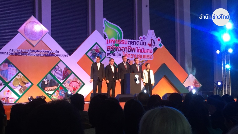 ‘พม.โดย สค.ตระหนักในปัญหา ดำเนินการป้องกันและแก้ไขในหลายมิติทั้งด้านกฎหมาย ด้านการฟื้นฟู ด้านครอบครัว ด้านมิติหญิงชายรวมถึงด้านเศรษฐกิจ ส่งเสริมอาชีพ จึงจัดมหกรรมตลาดนัด สร้างอาชีพให้มั่นคงสังคมไทยไร้ความรุนแรงนี้ขึ้น เพื่อเปิดพื้นที่แสดงสินค้าและผลิตภัณฑ์นวัตกรรมพื้นถิ่น ฝีมือของกลุ่มสตรีและครอบครัวทั่วประเทศกว่า 200 ร้าน ค้า เพื่อต่อยอดสร้างอาชีพสร้างรายได้ ส่งเสริมเศรษฐกิจให้สตรีและครอบครัว ซึ่งเป็นส่วนหนึ่งที่จะช่วยแก้ปัญหาความรุนแรงทั้งในครอบครัวและสังคมลงได้’ รมว.พัฒนาสังคม กล่าว