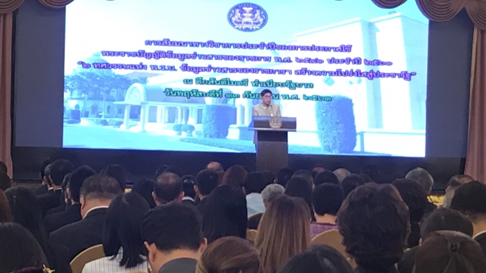 นายวิษณุ เครืองาม รองนายกรัฐมนตรี เป็นประธานเปิดงานสัมมนาทางวิชาการประจำปีของการประกาศใช้ พ.ร.บ.ข้อมูลข่าวสารของราชการ พ.ศ.2540 ประจำปี 2561 โดยมีหน่วยราชการต่าง ๆ เข้าร่วม อาทิ กรุงเทพมหานคร (กทม.) กรมการค้าต่างประเทศ กรมการขนส่งทางบก เพื่อให้ผู้บริหารระดับสูงและเจ้าหน้าที่ของรัฐมีความรู้ ความเข้าใจ และตระหนักถึงความสำคัญของกฎหมายข้อมูลข่าวสารของราชการมากขึ้น รวมถึงให้ทราบถึงสิทธิที่สำคัญของประชาชนในการใช้สิทธิตามกฎหมาย เพื่อตรวจสอบการใช้อำนาจรัฐและการเข้ามามีส่วนร่วมในการดำเนินงานของหน่วยงานรัฐได้อย่างมีประสิทธิภาพ
