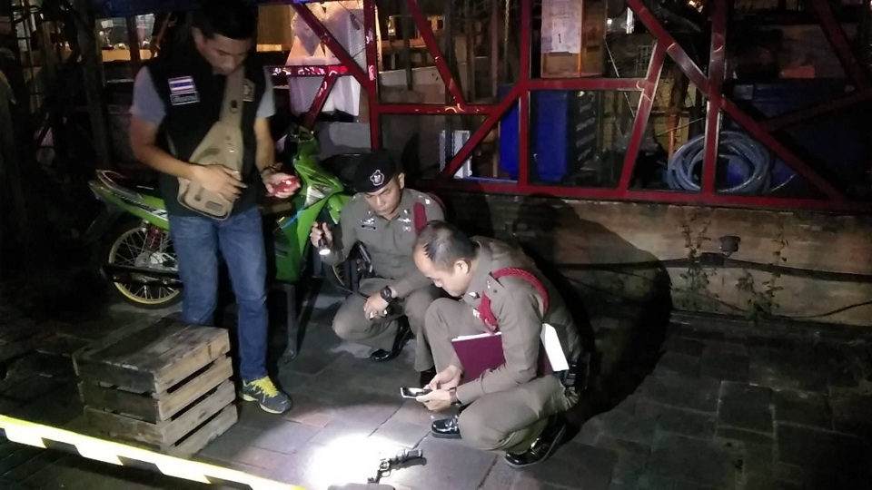 พ.ต.อ.อภิชัย กรอบเพชร ผกก.สภ.เมืองพัทยา จ.ชลบุรี พ.ต.ท.กรณ์ สมคะเณย์ รอง ผกก.ป.สภ.เมืองพัทยา นำกำลังเข้าตรวจสอบเหตุยิงกันเมื่อกลางดึกที่ผ่านมา (16 ก.ย.) ภายในร้านอาหารย่านถนนพัทยาสาย 3 ม.9 ต.หนองปรือ อ.บางละมุง จ.ชลบุรี พบผู้บาดเจ็บ 2 ราย เป็นชาย อายุ 49 ปี หรือที่รู้จักกันว่าเฮียไช้ วัดโพธิ์ และจ่าสิบตำรวจ อายุ 31 ปี ที่เกิดเหตุพบปลอกกระสุนปืนขนาด 9 มม. ตกอยู่ในร้านและหน้าร้านรวม 6 ปลอด และปืนขนาด 11 มม.อีก 1 กระบอก จึงเก็บไว้เป็นหลักฐาน