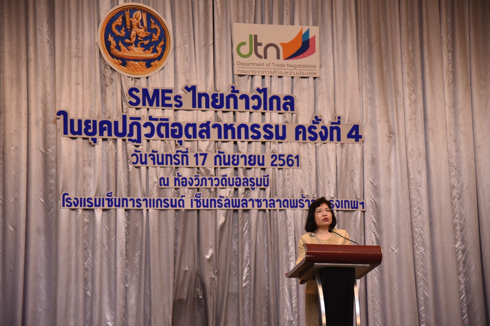 นางอรมน ทรัพย์ทวีธรรม อธิบดีกรมเจรจาการค้าระหว่างประเทศ เปิดเผยว่า กรมเจรจาการค้าระหว่างประเทศจับมือสภาที่ปรึกษาธุรกิจอาเซียนประเทศไทย จัดสัมมนา “SMEs ไทยก้าวไกลในยุคปฏิวัติอุตสาหกรรม ครั้งที่ 4” เพื่อมุ่งหวังสร้างความเข้าใจแก่ภาคธุรกิจ พร้อมตั้งรับกับระบบเศรษฐกิจโฉมใหม่ ซึ่งเป็นผลมาจากการเปลี่ยนแปลงของเทคโนโลยีและนวัตกรรมอย่างก้าวกระโดด