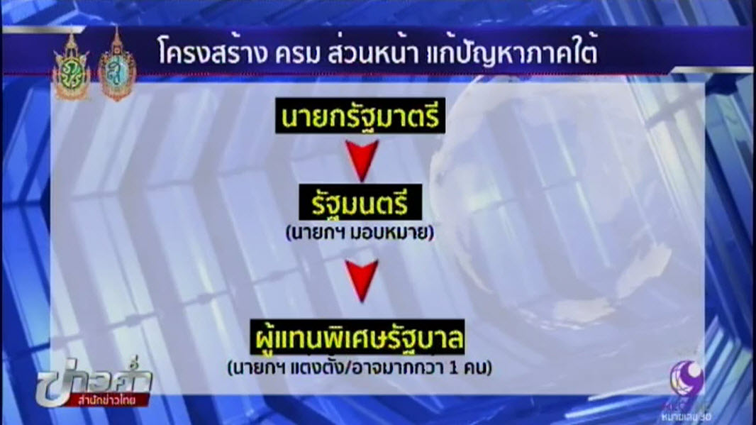 กรุงเทพฯ 15 ก.ย.-หลังจากนายกรัฐมนตรีมีแนวคิดจะตั้ง “ครม.ส่วนหน้า” ล่าสุดวันนี้ หัวหน้า คสช.ใช้อำนาจตามมาตรา 44 มีคำสั่งปรับปรุงการบริหารเพื่อแก้ไขปัญหาจังหวัดชายแดนภาคใต้