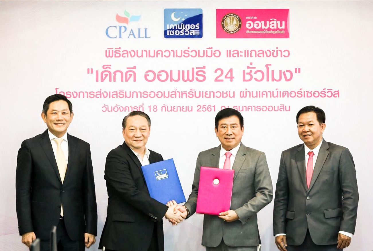 นายชาติชาย พยุหนาวีชัย ผู้อำนวยกาธนาคารออมสิน กล่าวว่า ธนาคารร่วมกับบริษัท ซีพี ออลล์ จำกัด (มหาชน) และบริษัท เคาน์เตอร์เซอร์วิส จำกัด เพื่อร่วมกันจัดทำโครงการเพื่อสังคม คือ โครงการส่งเสริมการออมสำหรับเยาวชน “เด็กดี ออมฟรี 24 ชั่วโมง” ผ่านเคาน์เตอร์เซอร์วิสถือเป็นการเพิ่มความสะดวกสบายและช่องทางการออมได้มากยิ่งขึ้น โดยสามารถออมหรือฝากเงินได้ตลอด 24 ชั่วโมง และช่องทางของการออมโดยเฉพาะผ่านเคาน์เตอร์เซอร์วิสที่มีถึง 13,000 สาขาทั่วประเทศ โดยยกเว้นค่าธรรมเนียมใช้บริการฝากเงินสำหรับเด็กและเยาวชนอายุ 7-20 ปี จึงถือเป็นอีกหนึ่งโครงการความร่วมมือครั้งใหญ่ขององค์กรทั้งภาครัฐและเอกชนที่มีความสำคัญต่อการขับเคลื่อนเศรษฐกิจของประเทศ โดยจะเปิดตัวอย่างเป็นทางการ หรือเริ่มใช้บริการดังกล่าวได้ตั้งแต่วันที่ 31 ตุลาคม 2561 เป็นต้นไป ซึ่งตรงกับวันออมแห่งชาติ