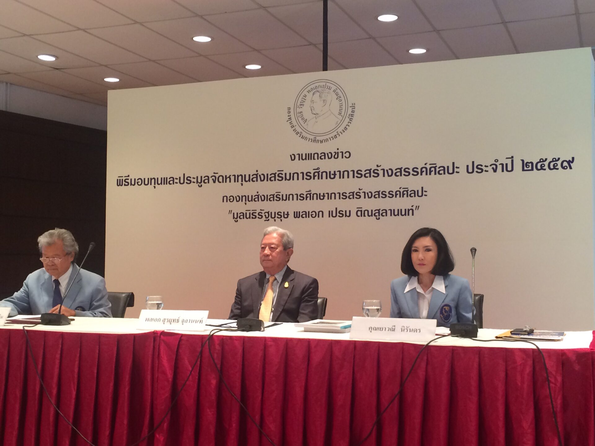 พล.อ.สุรยุทธ์ จุลานนท์ องคมนตรี เป็นประธานแถลงข่าวพิธีมอบทุน และประมูลจัดหาทุนส่งเสริมการศึกษาการสร้างสรรค์ศิลปะ ประจำปี 2559 เพื่อเป็นทุนสำหรับการสร้างสรรค์ ศิลปะนิพนธ์ ในปีสุดท้ายของการศึกษา ตั้งแต่ระดับปริญญาตรี ปริญญาโท และปริญญาเอก