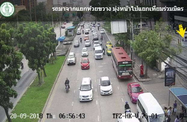 ถนนรามคำแหง ขาเข้า จากแยกพระราม 9 มุ่งหน้าคลองตัน รถหนาแน่น จอดนิ่งสนิท