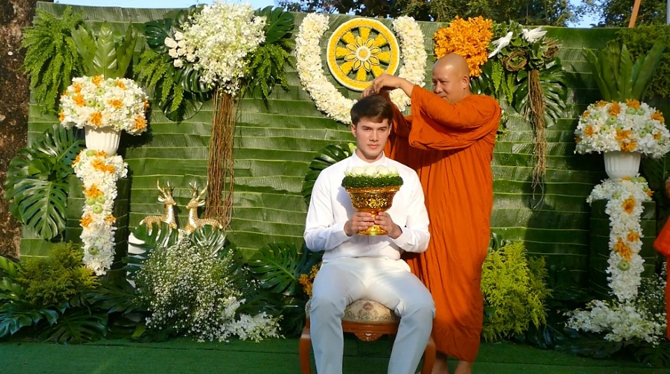 บรรยากาศที่บ้านพักหมู่ 3 ต.เริงราง อ.เสาไห้ จ.สระบุรี ครอบครัว “ทองระย้า” จัดงานอุปสมบทให้กับนายมิกค์ ทองระย้า พระเอกละครชื่อดัง โดยวันนี้ (22 ก.ย.) พระครูโสภณพรหมรังสี เจ้าคณะตำบลท่าทราย เจ้าอาวาสวัดพรหมมหาจุฬามณี อ.เมือง จ.นครนายก ซึ่งเป็นพระอาจารย์ที่มิกค์ เลื่อมใสศรัทธา ทำพิธีปลงผมนาค จากนั้นนางชรินทร์ ทองระย้า มารดาและญาติ ๆ ร่วมกันปลงผมเป็นลำดับ ท่ามกลางแฟนคลับและเพื่อนดารานักแสดงมาร่วมพิธีอย่างหนาตา อาทิ ยุ้ย-จีรนันท์ มะโนแจ่ม โบว์-เมลดา สุศรี พร้อมกันนี้มิกค์ ยังได้นำพวงมาลัยดอกไม้สดจุดธูปเคารพอัฐินายมอร์แกน เฮนเซ่น บิดาชาวเดนมาร์ค ที่บรรจุไว้ในเจดีย์ข้างโบสถ์วัดเชิงราก ซึ่งอยู่ไม่ไกลจากบ้านพัก