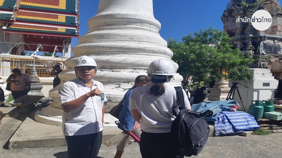 ด้านนายวิชิต อรุณมานะกุล วิศวกรโยธาเชี่ยวชาญ กรมโยธาธิการและผังเมือง จากการตรวจสอบเบื้องต้นยังไม่พบการเอียงและคาดว่าจะไม่เสียหายไปมากกว่านี้และต้องประเมินภาพรวมหลังจากนี้ว่า แนวทางการบูรณะ ฐานเจดีย์ โครงสร้าง ความมั่นคงแข็งแรง การยกตัวของโบราณสถานควรทำอย่างไร รวมถึงไปดูรายละเอียดของกฏหมาย ซึ่งกรมศิลปากร เป็นผู้รับผิดชอบการโครงการ ตามขั้นตอนปกติ ก่อนการบูรณะต้องมีการคำนวนโครงสร้างตามมาตรฐานก่อสร้างหรือซ่อมแซมอยู่แล้ว แต่การดีดตัว ก็อาจเกิดความผิดพลาดได้อยู่แล้ว