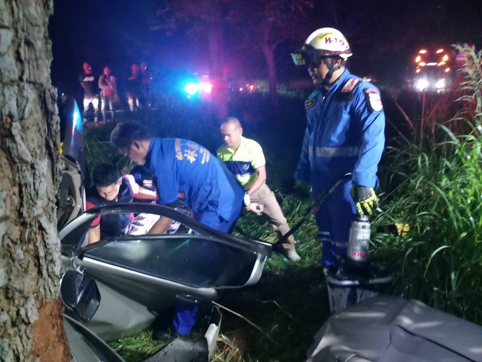 ระยอง 27 ก.ย.- รถกระบะพาครอบครัวจากบุรีรัมย์มาเยี่ยมญาติที่ระยองประสบอุบัติเหตุกลางทางชนต้นไม้ช่วงโค้งถนนวังจันทร์ เสียชีวิต 3 ราย เจ็บอีก 5 คาดคนขับหลับใน