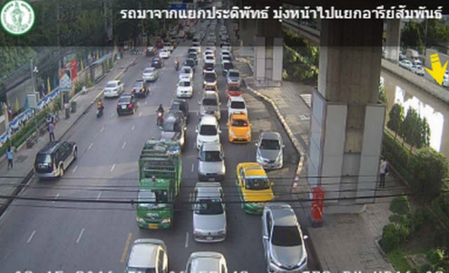 สภาพการจราจร ถนนพระรามที่ 6 จาก แยกด่านระนอง มุ่งหน้า แยกประดิพัทธ์ รถหนาแน่น ท้ายสะสมไปบนทางด่วนช่วงทางลงด่านระนอง