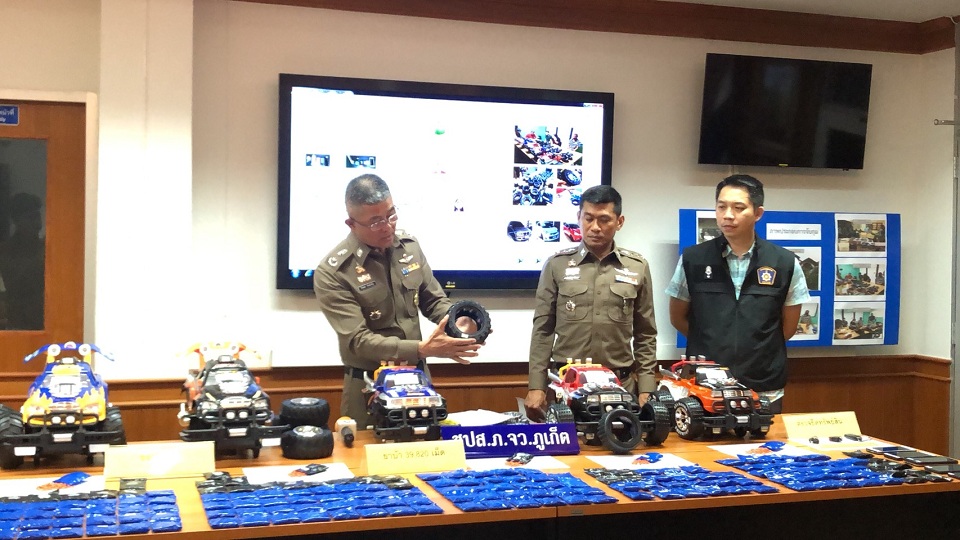 ภูเก็ต 28 ก.ย.- ตำรวจภูเก็ตล่อซื้อรวบ 3 เอเย่นต์ยาเสพติดใช้สินค้ารถของเล่นซุกยาบ้าล้อยางเกือบ 40,000 เม็ด ส่งทางพัสดุ พร้อมอายัดทรัพย์อีกกว่าล้านตรวจสอบ