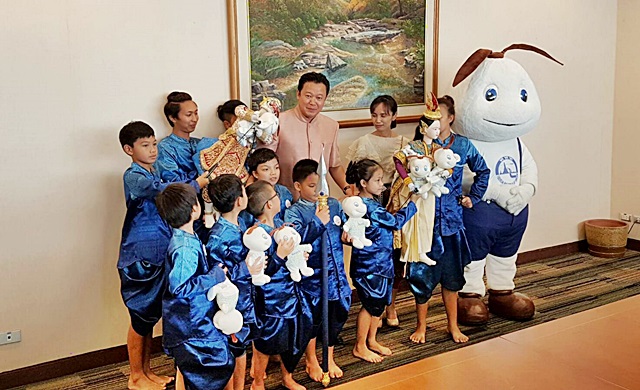 ผู้ว่าการ ททท.ได้มอบตุ๊กตาน้องสุขใจให้กับตัวแทนเยาวชนนักแสดงที่เดินทางมาทุกคน พร้อมกล่าวอวยพรทีมคณะนักแสดงให้ทำหน้าที่ถ่ายทอดเอกลักษณ์ความเป็นไทย ผ่านท่วงท่าการร่ายรำและเชิดหุ่นละครให้ชาวต่างชาติได้ประจักษ์ในความอ่อนช้อยงดงามของศิลปวัฒนธรรมไทยอย่างสุดความสามารถ เพื่อสร้างชื่อเสียงให้กับประเทศไทย