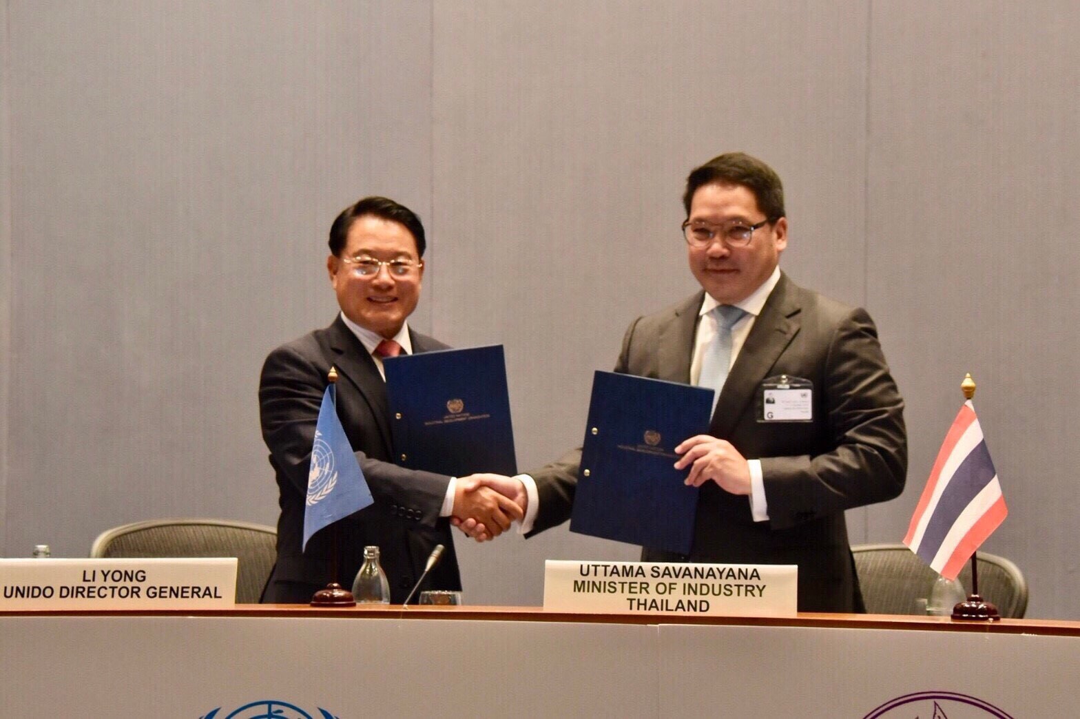 นายอุตตม สาวนายน รัฐมนตรีว่าการกระทรวงอุตสาหกรรม กล่าวว่า กระทรวงอุตสาหกรรมได้แลกเปลี่ยนองค์ความรู้ในการขับเคลื่อนอุตสาหกรรมสีเขียวที่กระทรวงอุตสาหกรรมดำเนินการ รวมทั้งหารือกับนายลี ยง ผู้อำนวยการใหญ่ ยูนิโด โดยขอให้เข้าร่วมสนับสนุนการพัฒนาเศรษฐกิจหมุนเวียน หรือ Circular Economy เพราะยูนิโดมีองค์ความรู้ในการพัฒนา ซึ่งสอดรับกับแนวทางการพัฒนา Smart City ของรัฐบาล และจะนำร่องการพัฒนาในพื้นที่เขตพัฒนาพิเศษภาคตะวันออก (อีอีซี) เป็นลำดับแรก ซึ่งทางยูนิโดมีการหารือเบื้องต้นกับสำนักงานอีอีซีแล้ว พร้อมทั้งกำหนดเป้าหมายการพัฒนาด้านต่าง ๆ อาทิ การคมนาคมขนส่ง การบริหารจัดการของเสียจากโรงงานอุตสาหกรรม การจัดการขยะและน้ำเสียจากชุมชน และการบริหารจัดการพลังงานในชุมชนเมือง