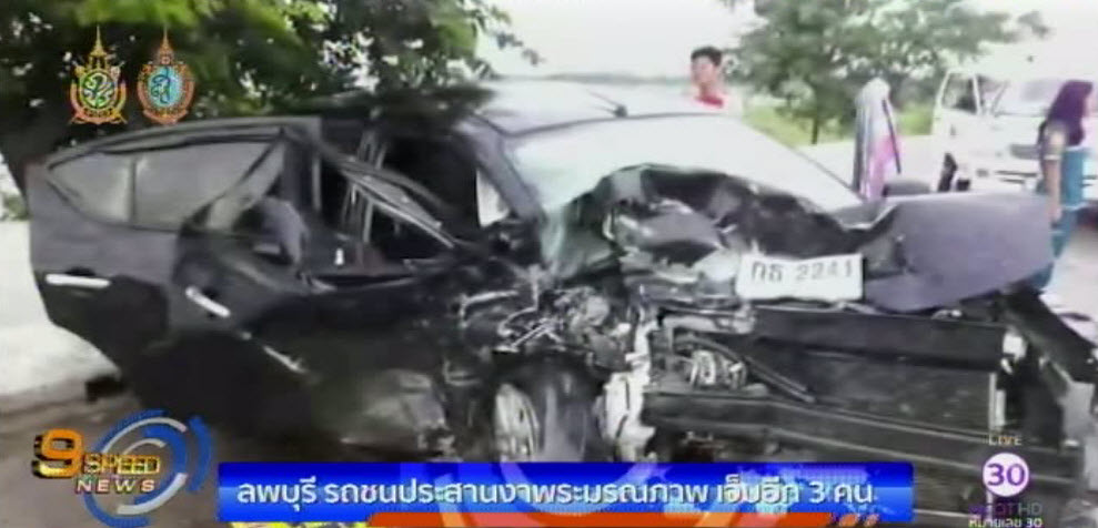 ลพบุรี 14 ก.ย. – เกิดอุบัติเหตุรถยนต์ 2 คัน ชนประสานงากัน บริเวณจุดชมวิว ตลาดปลา อ.ท่าหลวง จ.ลพบุรี ทำให้พระภิกษุมรณภาพทันที 1 รูป คนขับรถและคู่กรณีได้รับบาดเจ็บสาหัสอีก 3 คน ตำรวจสอบสวนทราบว่า ขณะเกิดเหตุมีฝนตกลงมาอย่างหนัก ประกอบกับมีหมอกลงจัดในช่วงเช้ามืด คาดว่าคนขับรถยนต์ของพระใช้ความเร็วสูง เพื่อจะรีบพาพระไปบิณฑบาต และมองเห็นทางไม่ชัด จึงชนเข้ากับรถยนต์ของ ด.ต.อำนาจ บุญประจวบ และภรรยา ที่ขับสวนมาอย่างจัง. – สำนักข่าวไทย