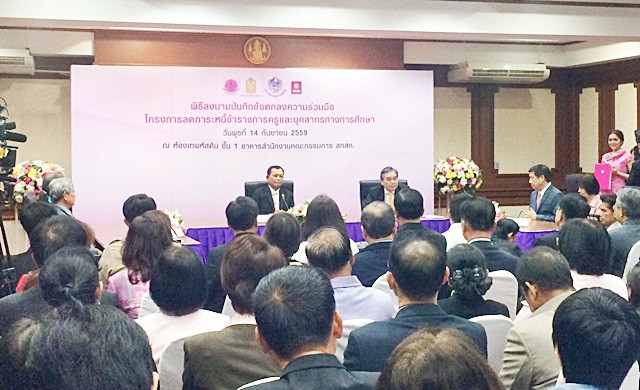 ก.ศึกษาฯ 14 ก.ย.- ‘ก.ศึกษา –คลัง’ ร่วมลงนาม โครงการลดภาระหนี้ครู ตามนโยบายนายกฯ โดยพบครูเป็นกลุ่มอาชีพที่มีหนี้สินมากที่สุด เฉพาะในระบบ ช.พ.ค.รวมถึง 4แสนล้านบาท ยังไม่รวมกู้นอกระบบ