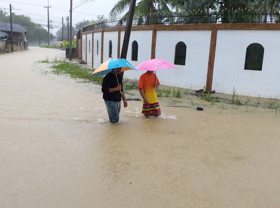 นายชาตรี จันทร์วีระชัย นายอำเภอกุยบุรี จ.ประจวบคีรีขันธ์ พร้อมกำนัน ผู้ใหญ่บ้านตำบลสามกระทาย และนายกเทศมนตรีตำบลไร่ใหม่ สำรวจพื้นที่ได้รับผลกระทบจากฝนตกต่อเนื่อง ทำให้เกิดน้ำท่วมในพื้นที่บ้านดอนกลาง ซอย 2 หมู่ 4 บ้านป่าถล่ม หมู่ 2 และหมู่ 6 ต.สามกระทาย รวมทั้งถนนเพชรเกษมน้ำท่วมหลายช่วง เจ้าหน้าที่ต้องปิดการจราจรฝั่งซ้ายขาเข้า กทม. 1 ช่องทาง และให้รถทุกชนิดชะลอความเร็ว โดยมีตำรวจทางหลวง เจ้าหน้าที่แขวงทางหลวงประจวบคีรีขันธ์ และอาสากู้ภัยทางหลวงกุยบุรีช่วยกันอำนวยความสะดวกการสัญจร เพื่อป้องกันอุบัติเหตุ ขณะเดียวกันได้ประสานบริษัทรับเหมาก่อสร้างโครงการรถไฟรางคู่ เพื่อเปิดพื้นที่ช่วงการก่อสร้างในการระบายน้ำลงทะเลและไม่ให้น้ำท่วมสูงบนถนนเพชรเกษม เนื่องจากน้ำป่าเทือกเขาตะนาวศรีด้านทิศตะวันตกเริ่มไหลบ่ามาสมทบ