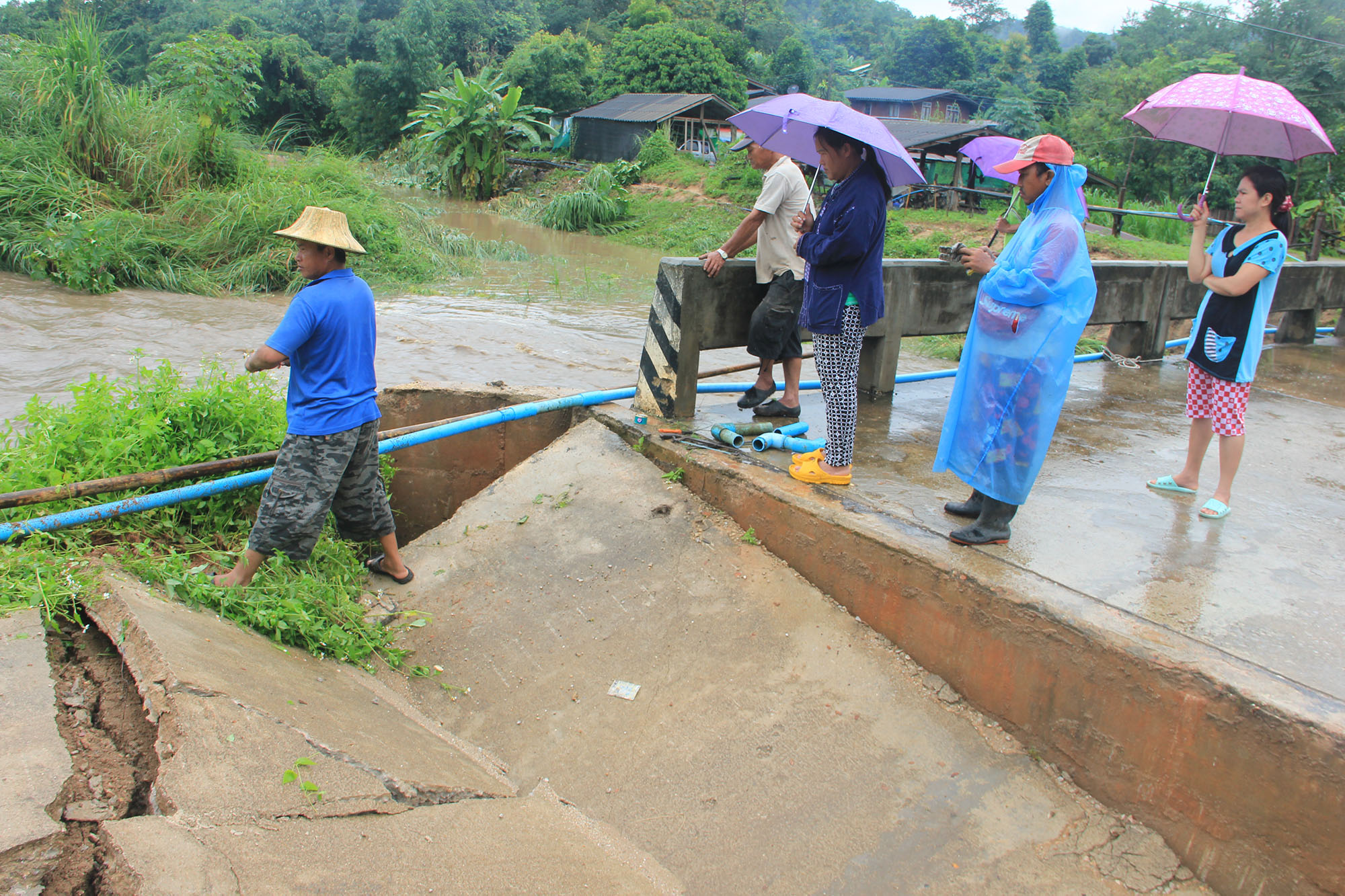 ลำปาง 14 ก.ย.- นอภ.ห้างฉัตรเร่งสำรวจความเสียหายจากฝนตกหนัก น้ำป่าดอยขุนตาลหลากพัดถนนและสะพานเสียหาย