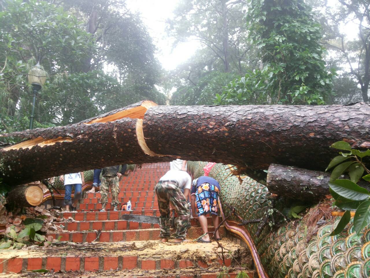 เชียงใหม่ 14 ก.ย.- ปภ.เชียงใหม่แจ้งทุกอุทยานฯ ขอความร่วมมือปิดเที่ยวน้ำตกชั่วคราว พบปริมาณน้ำเพิ่ม เตือน 4 อำเภอเฝ้าระวัง ล่าสุดต้นสนยักษ์โค่นทับบันไดพญานาคทางขึ้นดอยสุเทพ
