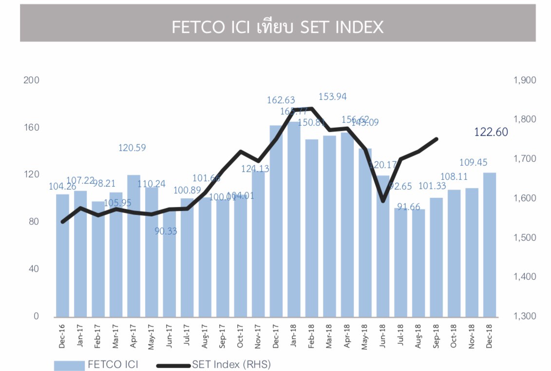 นายไพบูลย์ นลินทรางกูร ประธานกรรมการสภาธุรกิจตลาดทุนไทย กล่าวว่า ดัชนีความเชื่อมั่นนักลงทุน (FETCO Invester Confidence Index) ประจำเดือนตุลาคม 2561 ซึ่งสะท้อนความเชื่อมั่นในอีก 3 เดือนข้างหน้า คือ เดือนธันวาคม 2561 เพิ่มขึ้นมากในเกณฑ์ร้อนแรง (Bullish) เป็นเดือนแรกในรอบ 7 เดือน โดยเพิ่มขึ้นร้อยละ 12.01 มาอยู่ที่ระดับ 120.60 จากระดับ 109.45 เนื่องจากนักลงทุนเชื่อมั่นในสถานการณ์การเมือง การเข้าสู่โหมดเลือกตั้ง และภาวะเศรษฐกิจในประเทศที่เติบโตต่อเนื่อง ตัวลขการส่งออกที่ขยายตัวดี และความเชื่อมั่นในภาคการท่องเที่ยว แม้ว่าจะได้รับผลกระทบจากนักท่องเที่ยวจีนลดลงก็ตาม