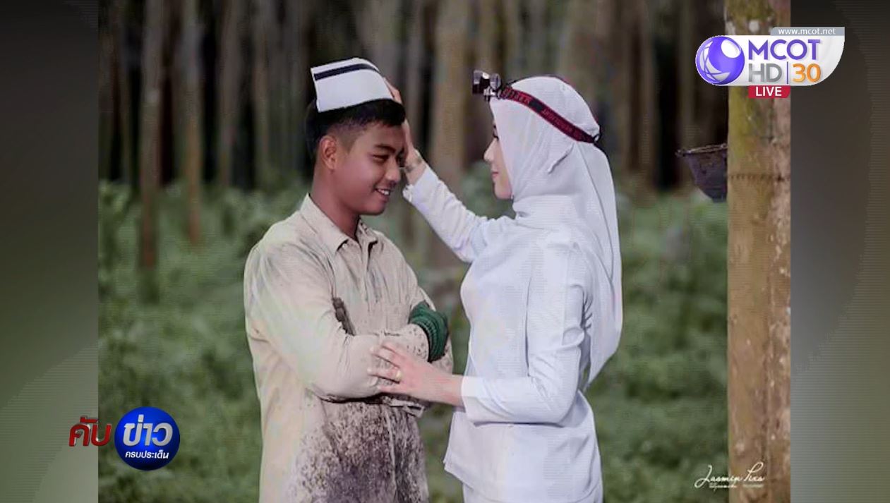 ยะลา 8 ต.ค.-แชร์สนั่น! ภาพคู่บ่าวสาวสุดครีเอท เจ้าบ่าวใส่ชุดชาวสวนยาง ส่วนเจ้าสาวแต่งชุดพยาบาล ไม่จำเป็นต้องใช้ชุดแพง สถานที่อลังการ
