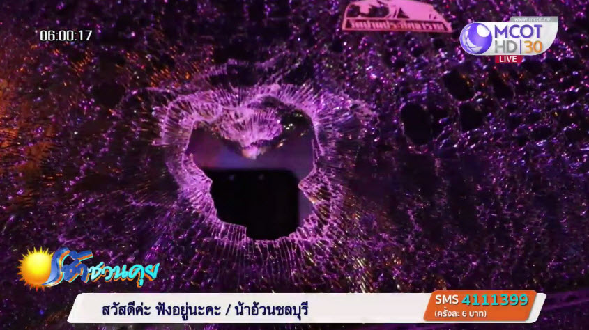 ฉะเชิงเทรา 10 ต.ค.-หนุ่มปริศนาโผล่กลางถนนขวางรถบรรทุก 6 ล้อ ก่อนตะโกนด่าแล้วขว้างสากกะเบือทะลุกระจกหน้าโดนเด็กชายวัย 5 ขวบ ได้รับบาดเจ็บศีรษะปูดบวม