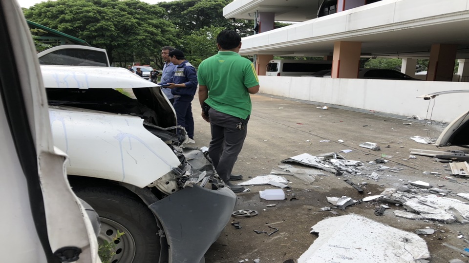 ผู้สื่อข่าวรายงานว่า เกิดอุบัติเหตุรถกระบะยี่ห้อโตโยต้าสีขาวทะเบียน 1 ฒร 8294 ดทม.ตกจากอาคารจอดรถของสำนักงานคณะกรรมการอาหารและยา (อย.) ที่บริเวณชั้น 6 ทำให้อาคารจอดรถได้รับเสียหายรถกระบะพังยับ ทราบชื่อเจ้าของรถ นายจิรภัทร วีระชาติวัฒนา อายุ 58 ปี ขณะเกิดเหตุเพิ่งเสร็จสิ้นจากการติดต่อกับศูนย์วันสต็อปเซอร์วิสของ อย.เพื่อจดแจ้งผลิตภัณฑ์ กำลังจะเดินทางขึ้นรถ ปรากฏว่า เมื่อสตาร์ทรถ รถได้ถอยหลังทะลุกำแพงลานจอดรถแล้วตกมาข้างล่างทันที ซึ่งได้รับบาดเจ็บเพียงเล็กน้อยที่แขนซ้ายถลอก เพราะยังไม่ได้ขึ้นรถ