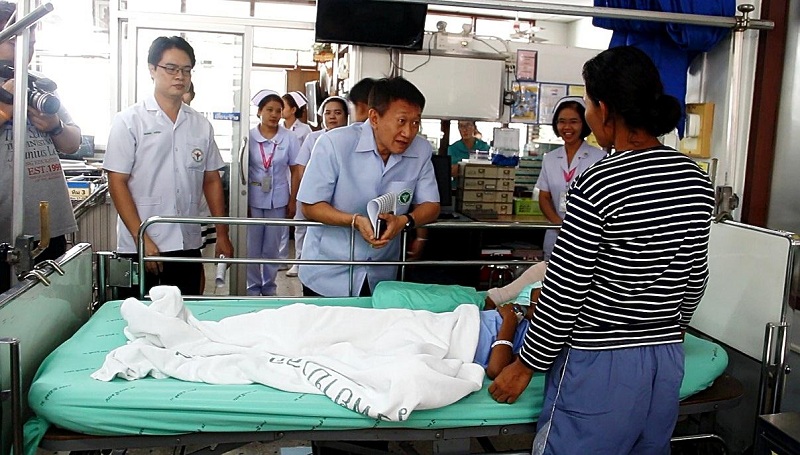 นพ.ณรงค์ ธาดาเดช ผู้อำนวยการโรงพยาบาลศูนย์อุดรธานี ตรวจเยี่ยมอาการของน้องต้นหลิว เด็กชายอายุ 10 ขวบ นักเรียนชั้น ป.5 บ่ายวันนี้ (11 ต.ค.) ที่ตึกรวมเมตตาธรรม 2 (ชาย) เพื่อติดตามอาการบาดเจ็บจากการเล่นประทัด และถูกส่งต่อจากโรงพยาบาลบ้านดุง เข้ามารักษาที่โรงพยาบาลศูนย์อุดรธานี ซึ่งแพทย์ได้ผ่าตัดนิ้วและมือขวาให้เรียบร้อยแล้ว และยังต้องนอนพักรอดูอาการ