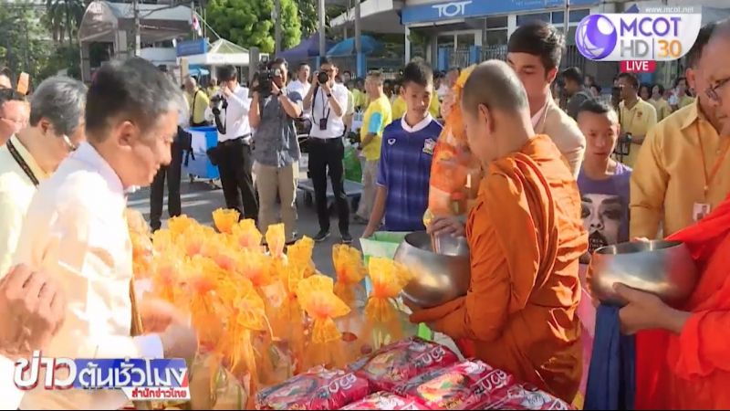 Bangkok, Oct 12 (TNA) – Staff of MCOT Plc and three other organizations wore yellow clothing and gave alms to 89 Buddhist monks on the occasion of the 2nd anniversary of King Bhumibol Adulyadej’s passing on Oct 13, 2016.