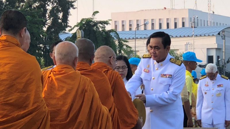 Bangkok, Oct 13 (TNA) – Prime Minister Prayut Chan-o-cha presided over the alms-giving to 890 Buddhist monks to remember King Bhumibol Adulyadej’s passing on Oct 13, 2016.