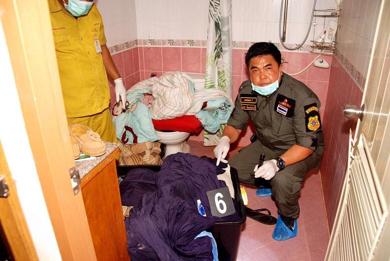 เมื่อเวลา 19.30 น. (13 ต.ค.) ร.ต.ท.เนติรัฐ ไชยสถิตย์ รองสารวัตร (สอบสวน) สภ.หัวหิน จ.ประจวบคีรีขันธ์ รับแจ้งเหตุฆาตกรรมภายในบ้านพักซอย 5 ต.หินเหล็กไฟ อ.หัวหิน จึงประสานชุดสืบสวน ชุดพิสูจน์หลักฐาน แพทย์และมูลนิธิเพชรเกษมหัวหินเข้าที่เกิดเหตุเป็นทาวน์เฮ้าส์ชั้นเดียว ภายในห้องน้ำพบศพ น.ส.ไก่ อายุ 39 ปี อยู่ในกล่องพลาสติกขนาดใหญ่ มีผ้านวมกับหมอนปิดฝาทับอำพราง สภาพศพเริ่มอืดและส่งกลิ่นเหม็น พบบาดแผลจากของมีคมที่ลำคอ 7 แห่ง และบาดแผลฉกรรจ์จากของแข็งที่กกหูขวาคาดว่าเสียชีวิตมาไม่ต่ำกว่า 3 วัน บริเวณอ่างล้างหน้าพบมีดเปื้อนเลือด 1 เล่ม จึงเก็บไว้เป็นหลักฐาน และนำศพส่งไปสถาบันนิติเวช โรงพยาบาลตำรวจ ให้แพทย์ชันสูตร