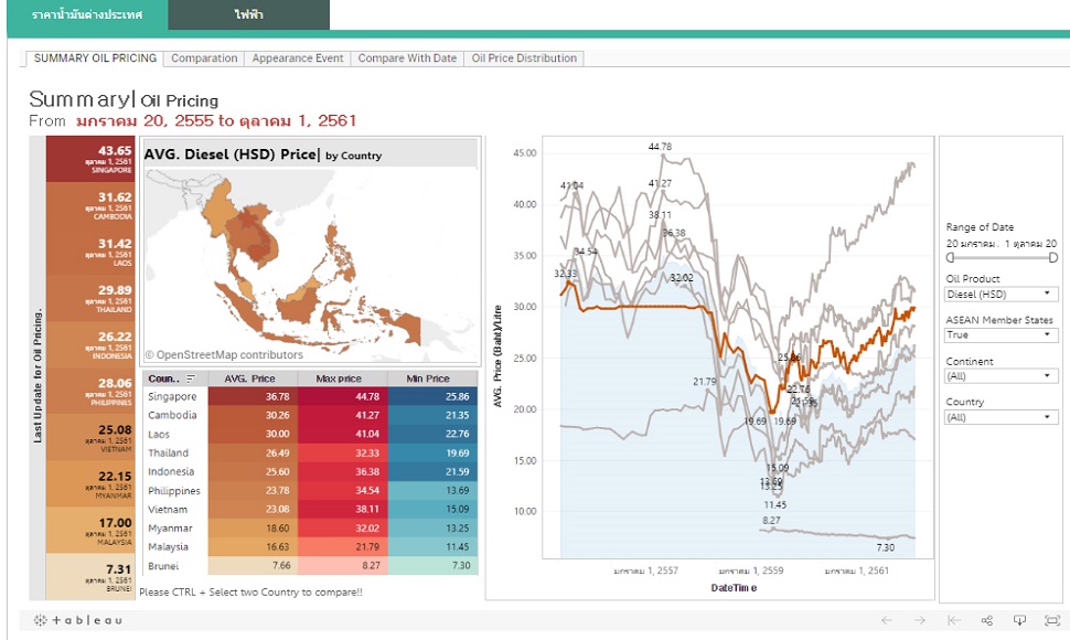 กรุงเทพฯ 15 ต.ค.- สนพ.เปิดบริการใหม่ EDV วิเคราะห์และเปรียบเทียบราคาน้ำขายปลีกน้ำมัน ในอาเซี่ยน