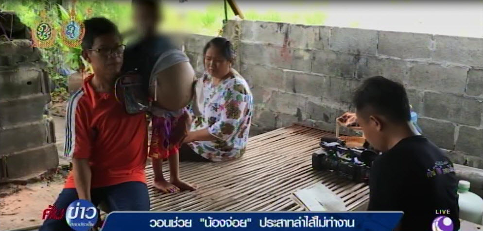 ทั้งนี้ ปัจจุบันน้องจ่อย อายุ 5 ขวบ ผ่าตัดมาแล้ว 3 ครั้ง ต้องให้อาหารทางเส้นเลือดดำ ขับถ่ายทางหน้าท้อง ที่ทางแพทย์ได้เจาะไว้ให้ และต้องคอยดูแลให้สารอาหาร และน้ำเกลืออย่างใกล้ชิดตลอดเวลา หากน้องหิวอยากกินทาง ปากก็ให้เคี้ยวได้ แต่ต้องคายออกมาคืน ไม่ให้กลืนลงไป เพราะจะทำให้ไปติดหรือตกค้างภายใน