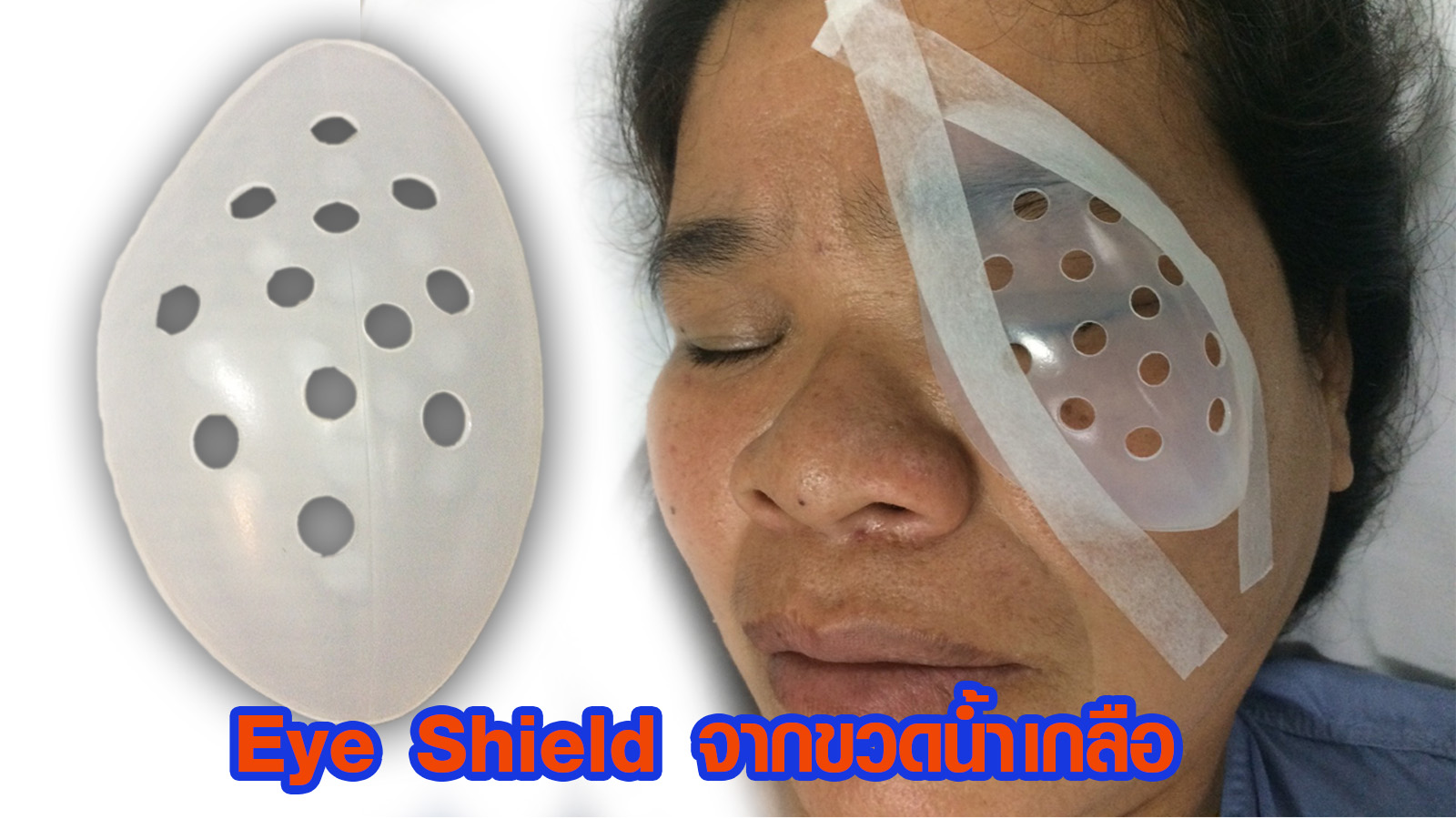 รพ.ศรีสังวรสุโขทัย 22 ตค.รพ.ศรีสังวรสุโขทัย ประดิษฐ์ ฝาครอบตา (Eye Shield) ป้องกันลม ฝุ่นละออง หลังผ่าตัด จากขวดน้ำเกลือ ที่ใช้แล้ว ลดต้นทุน ลดโลกร้อน