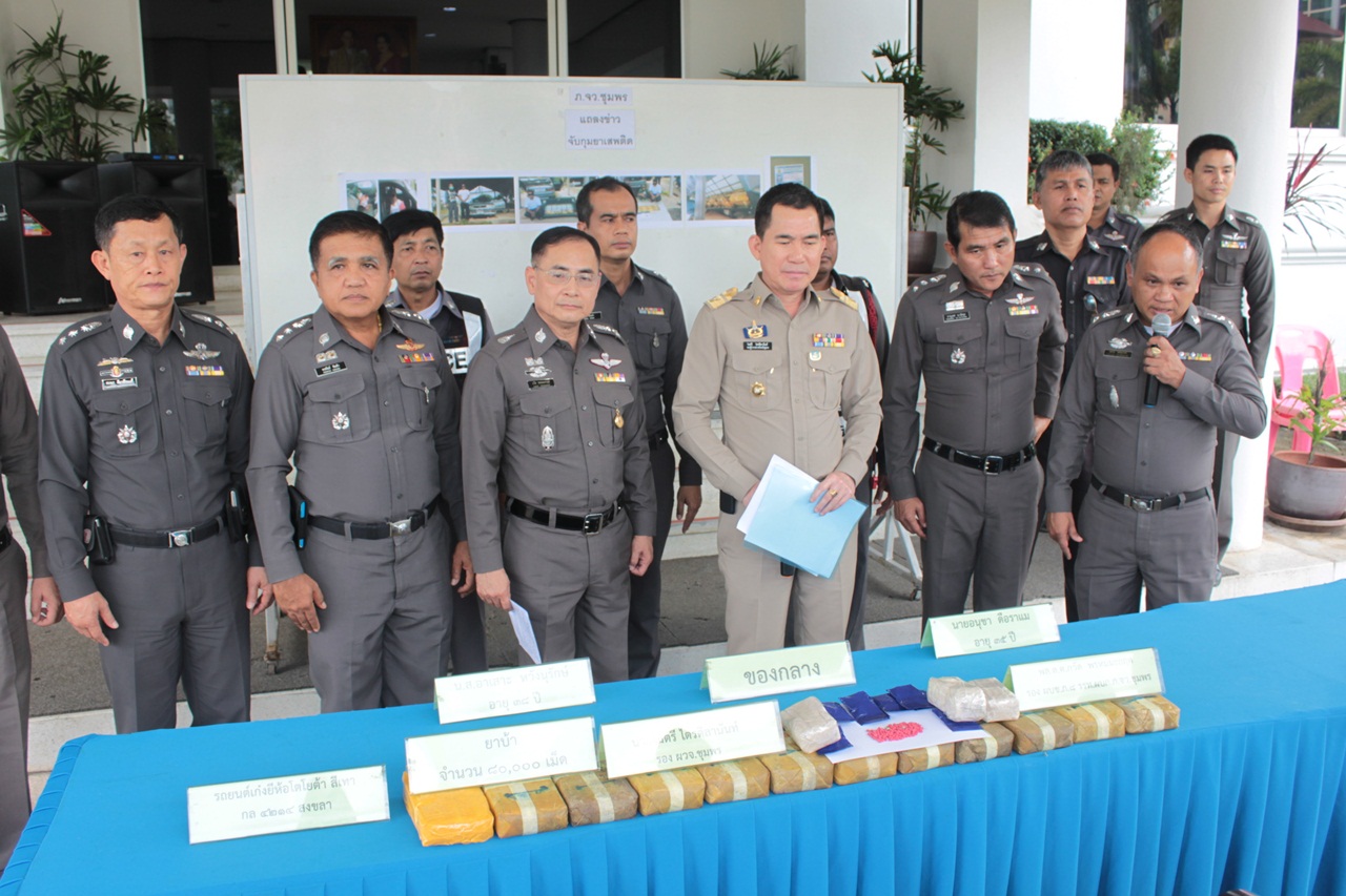 พล.ต.ต.ภวัต พรหมมะกฤต รอง ผบช.ภ.8 รักษาราชการแทน ผบก.ภ.จว.ชุมพร แถลงจับกุมสามีภรรยาผู้ต้องหายาเสพติด คือ นายอนุชา ดือราแม อายุ 35 ปี ชาว จ.ปัตตานี และ น.ส.อาเสาะ หวังนุรักษ์ อายุ 38 ปี พร้อมของกลางยาบ้า 80,000 เม็ด ซุกซ่อนในรถยนต์สีเทา ทะเบียน กล 4214 สงขลา ขณะเดินทางมาถึงด่านตรวจประตูภาคใต้-บ้านพละ ถ.เพชรเกษม หมู่ 3 ต.เขาไชยราช อ.ปะทิว จ.ชุมพร พบรถเก๋งโตโยต้า สีเทา ทะเบียน กล 4214 สงขลา