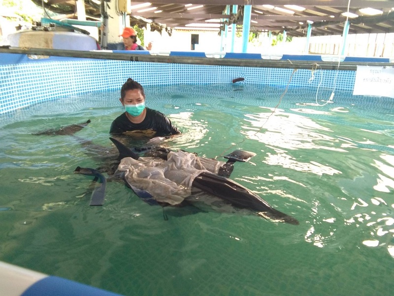 กรณีชาวบ้านพบโลมาลายแถบสภาพอ่อนแรงเกยตื้นหาดกาสิง บ้านบ่อเจ็ดลูก ตำบลปากน้ำ อำเภอละงู จังหวัดสตูล เมื่อวันที่ 21 ต.ค.ที่ผ่านมา และแจ้งหน่วยงานที่เกี่ยวข้องมาช่วยเหลือ เบื้องต้นไม่พบบาดแผลตามลำตัว เป็นโลมาเพศผู้ ลำตัวยาวประมาณ 2 เมตร น้ำหนัก 70 กิโลกรัม และนำมาอนุบาลที่ศูนย์วิจัยและพัฒนาประมงอันดามันตอนล่าง (สตูล) กรมประมง ตำบลปากน้ำ อำเภอละงู