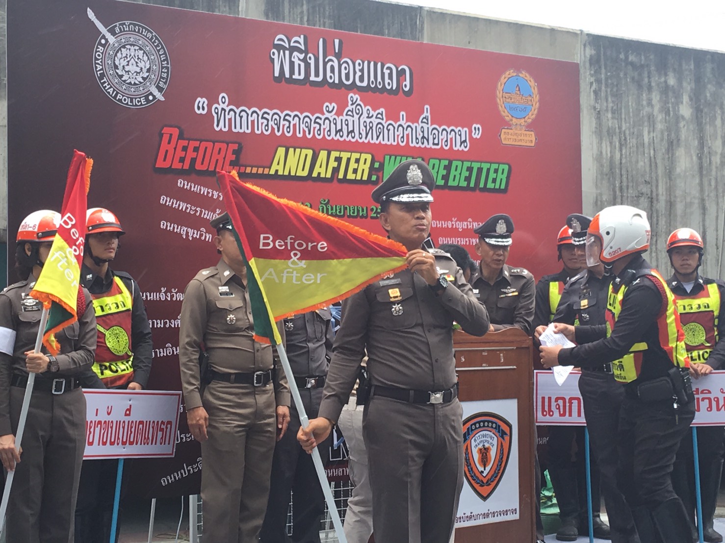 กทม.12 ก.ย.- มีการมอบธง ปล่อยแถวชุดปฎิบัติการ “ทำจราจรวันนี้ให้ดีกว่าเมื่อวาน” เป็นการ Kick off รณรงค์สร้างความเข้าใจ กระตุ้นให้ผู้ใช้รถใช้ถนนเกิดความตื่นตัว ร่วมแก้ไขปัญหาการจราจร