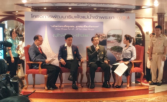 ขณะที่ รศ.สกุล ห่อวโนทยาน ผู้จัดการโครงการพัฒนาริมฝั่งแม่น้ำเจ้าพระยา กล่าวสรุปแผนนำร่อง 14 กม.ที่เริ่มจากสะพานพระราม7 ถึงสะพานสมเด็จพระปิ่นเกล้า ว่า โครงการนี้มี 12แผนย่อย ยึดแนวทางอนุรักษ์-สืบสาน-สร้างสรรค์ ผ่านการมีส่วนร่วมในพื้นที่สาธารณะที่เป็นทางเดินและทางจักรยานที่มีความกว้าง 7-10เมตร โดยใช้เทคโนโลยีก่อสร้างเพื่อไม่ให้กีดขวางทางไหลของน้ำ ไม่ละเมิดความเป็นส่วนตัว ของคนในชุมชน ยันระหว่างก่อสร้างไม่กระทบกับสิ่งแวดล้อม คาดเริ่มก่อสร้างได้ต้นปี2560 แล้วเสร็จปลายปี2561